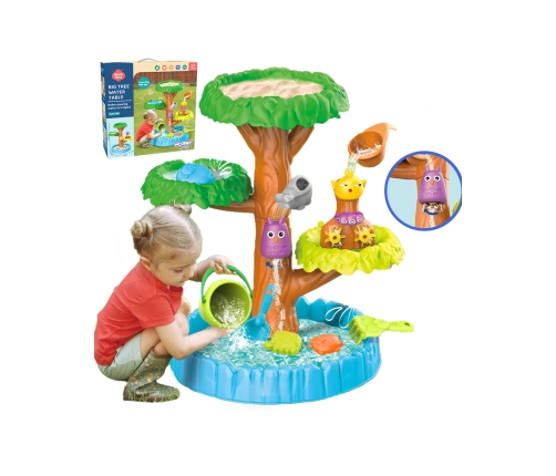 Stół Wodny 4-poziomowy w kształcie drzewa od marki WOOPIE jest idealny do zabawy z wodą i piaskiem. Zestaw zawiera wszystko, co potrzebne do niekończącej się zabawy - składany stół, wiaderko, nalewak, 3 foremki, 2 łopatki, konewkę. Twoje dziecko będzie mogło wlewać wodę do różnych zwierzątek, co spowoduje, że koła zębate zaczną się kręcić, dodając jeszcze więcej radości do i tak już wspaniałej zabawy. Zabawka jest przeznaczona do zabawy na zewnątrz: na plaży lub piaskownicy.