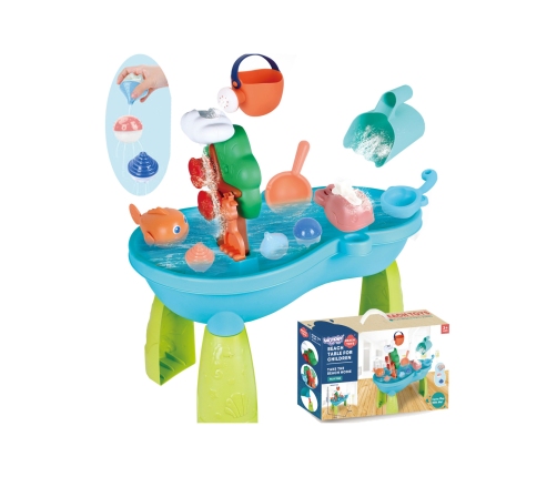 Stół Wodny 2w1 Piaskownica od marki WOOPIE jest idealną zabawka do zabawy z wodą i piaskiem. Zestaw zawiera akcesoria takie jak: rybki, konewkę, wiaderko, pływaki i wiele innych. Stolik posiada kołowrotek, który się obraca podczas polewania go wodą. Zestaw jest przeznaczony do zabawy w domu, jak i na zewnątrz.