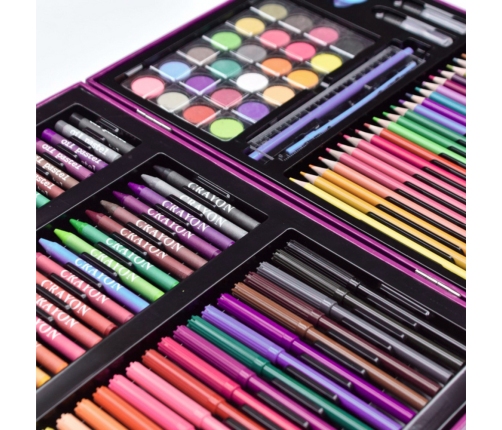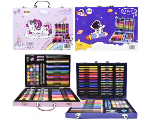 The art set in an elegant suitcase is a great choice for any young creator who wants to develop their artistic skills. The set consists of 128 elements, providing a wide range of tools for implementing various artistic projects. Thanks to the wealth of accessories, such as crayons, paints, pastels and brushes, young artists can create unique works and experiment with different art techniques.