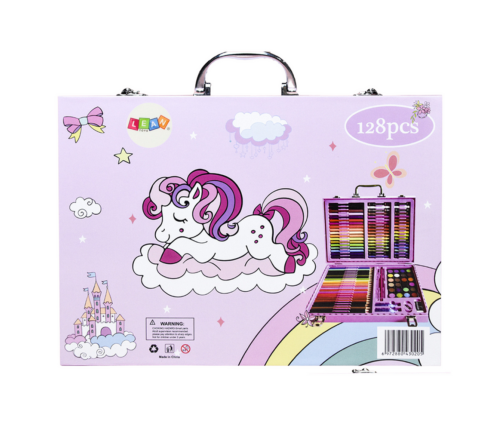 Art Set in a Suitcase - 128 Elements Unicorn or Alien Pattern