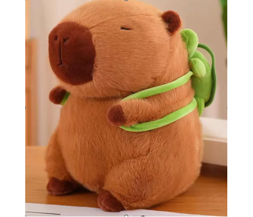 This plush Capybara with Backpack is an adorable and soft toy that captivates with its unique design and meticulous craftsmanship. Made of soft-to-the-touch material, with attention to every detail – from the closed eyes and delicate muzzle to the adorable green backpack on its back. The capybara has a slightly rounded silhouette, giving it a friendly and realistic look, encouraging hugs and play.