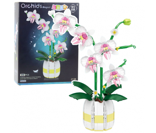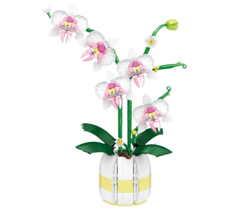 This building block set featuring an elegant pink and white orchid in a decorative pot is a fusion of aesthetics and creative play. Inspired by the beauty of orchids, which symbolize delicacy, nobility, and harmony, each piece has been carefully designed to create a striking and realistic floral arrangement, perfect as a decorative element.