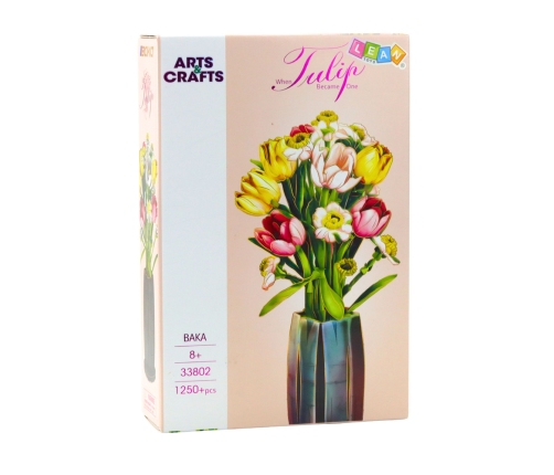 This elegant construction set allows you to create a unique bouquet of tulips in a vase using 1250 pieces. It's perfect for both children and adults who appreciate creative play, aesthetics, and durability. Once assembled, the set looks incredibly realistic – a perfect decoration for your home or office, or a unique gift for a loved one.