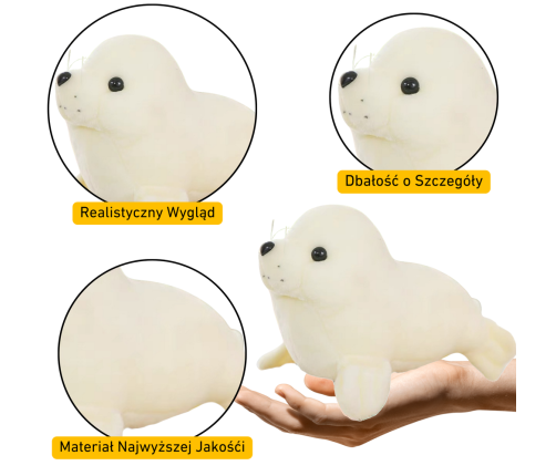 Plush white seal 24 cm, which will work perfectly as a charming addition to a child's room and a cuddly toy. Made of soft and pleasant to the touch material, it provides comfort during play and sleep. Thanks to its compact size, the child can take it everywhere with them.