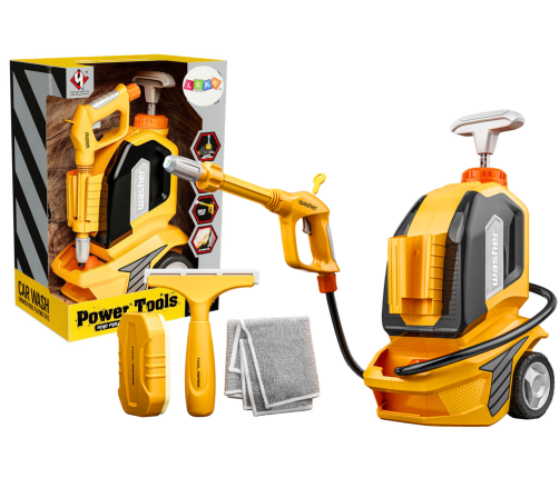 A pressure washer with a water function is a great toy for children who love to imitate adults in everyday activities. This easy-to-use washer does not require batteries - just fill the tank at the top of the toy with water, then move the handle up and down to get the pressure. To start the washer, insert the key into the gun and press the button on the handle, which will release a stream of water.