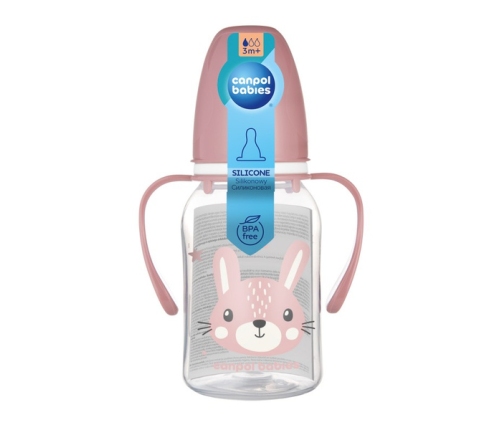 Butelka wąska z uchwytem Canpol babies 120 ml CUTE ANIMALS jest lekka, trwała i całkowicie transparentna. Czytelna i precyzyjna skala umożliwia kontrolowanie ilości zjadanej przez dziecko. Smoczek jest wykonany z miękkiego i bezpiecznego silikonu, dzięki czemu jest bezsmakowy i bezzapachowy, co ułatwia akceptację butelki przez dziecko. Wygodne zdejmowane uchwyty pozwalają Maluszkowi na samodzielne trzymanie butelki, gdy jest już na to gotowe. Canpol butelka z uchwytem 120 ml CUTE ANIMALS została wykonana z bezpiecznego i nowoczesnego materiału. Jest kompatybilna ze wszystkimi laktatorami Canpol babies, co ułatwia odciąganie pokarmu bezpośrednio do butelki, bez konieczności przelewania do specjalnych torebek na pokarm, dzięki czemu nie zmarnuje się ani kropla cennego mleka mamy. Canpol butelka z uchwytem 120 ml CUTE ANIMALS nadaje się do mycia w zmywarce, dezynfekcji oraz podgrzewania w kuchence mikrofalowej czy podgrzewaczu. Canpol butelka z uchwytem 120 ml CUTE ANIMALS została zaprojektowana i wyprodukowana w Polsce z zachowaniem najwyższych standardów jakości i bezpieczeństwa. Motyw uroczych zwierzątek zachwyci każdego Maluszka – stwórz zestaw z pozostałymi produktami z kolekcji Cute Animals. Nie zawiera BPA.