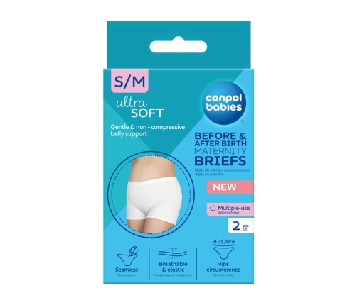 Majtki poporodowe Canpol Babies doskonale podtrzymują podkład poporodowy na miejscu, zapewniając komfort użytkowania. Odpowiednia bielizna poporodowa ułatwia i przyspiesza gojenie się ran, zarówno po porodzie fizjologicznym, jak i poprzez cesarskie cięcie. Wysoki stan majtek jest delikatny dla blizny po cesarskim cięciu. Majtki dla ciężarnych Canpol babies są wielorazowe i można prać je ręcznie. W opakowaniu znajdują się 2 sztuki. Rozmiar S/M jest odpowiedni dla kobiet o obwodzie bioder od 80 do ok. 120 cm.