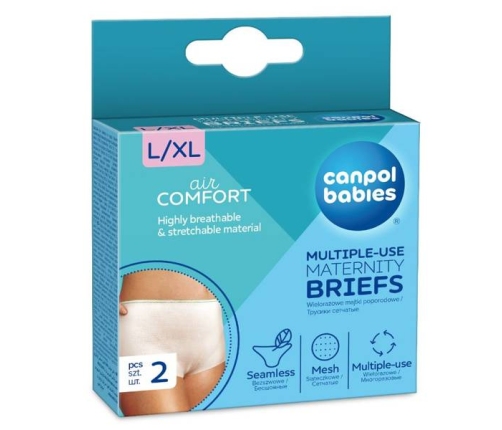 Wielorazowe, siateczkowe majtki poporodowe Canpol 73/002 L/XL wykonane zostały ze specjalnej, delikatnej i przepuszczającej powietrze siateczki nylonowej.