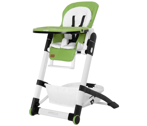 Колёса с мягким ходом облегчат транспортировку в пределах помещения. Специальный фиксатор исключает самостоятельное раскладывание стульчика. B сложенном виде почти не занимает места. Высота расположения ремней безопасности регулируется. В наличии большая корзина для игрушек и карман сзади.