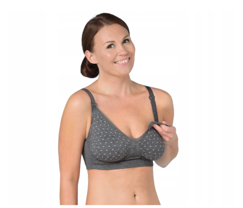 Biustonosz posiada odpinane miseczki, pozwalające komfortowo karmić piersią bez zdejmowania biustonosza.