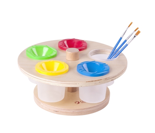 Вращающаяся подставка для красок от CLASSIC WORLD — это качественный деревянный продукт. У нее есть 5 пластиковых стаканчиков с крышками, что делает ее подходящей для детей — у подставки нет острых краев, и она стабильно стоит. Благодаря закрытым контейнерам краски защищены от высыхания. Вращающаяся подставка для красок идеально подходит также для детских садов и других образовательных учреждений, так как с ее помощью дети не будут опрокидывать краски, загрязняя себя и окружающее пространство. Это также отличная идея для домашнего использования, если ваш ребенок — маленький художник: теперь будут окрашиваться только листы бумаги!