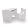 Все углы закруглены для безопасности. Стол может быть использован как обычный стол для рисования или учебы или после переворота столешницы, становится игровым полем для кубиков. В комплект входит столешница для маленьких кубиков, поверхность для кубиков большего размера можно приобрести отдельно.