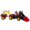 Детский педальный трактор зеленого цвета. Трактор подходит для использования в помещении и на улице. Ребенок крутит сам педали, управляя движением: может ездить как вперед, так и назад. Надежная и устойчивая конструкция машины проста в управлении, безопасная и маневренная.