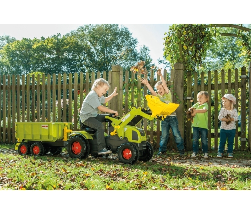 Трактор с педалями приводится в движение с помощью педалей и цепного привода, что позволяет ребенку развивать мышцы на ногах и учиться координировать свои движения. Многофункциональный и очень простой в управлении. Управление ковшом происходит вручную, с помощью специальных рукояток. Ковш, расположенный впереди - опускается и поднимается. Хорошая проходимость трактора по различному грунту осуществляется за счет 4-х широких бесшумных колес с протектором. Широкое удобное сиденье. Сиденье передвигается по мере роста ребенка.Капот поднимается.