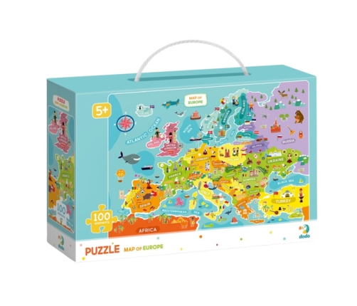 Puzzle DODO Mapa Europy to 100 elementowa układanka, która po ułożeniu przedstawiają mapę Europy. Na obrazku znajdziemy również nazwy krajów, ich flagi, najważniejsze zabytki i to co je wyróżnia.