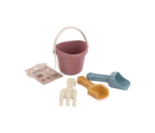 Sandbox set designed specifically for babies, featuring pastel colors. It includes a bucket, shovel, sieve shovel, and rake. It is manufactured with eco-friendly materials and it is environmentally friendly, consisting of 60% biopolyethylene and 40% recycled polypropylene. All pieces can be conveniently stored in the bucket. Due to its maximum strength and durability, this set is suitable for collective use.