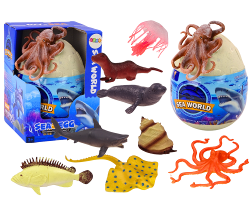 An egg with sea animal figures is an extraordinary set that will take your child to the fascinating world of underwater adventures. A large egg decorated with an image of an octopus on the shell hides a wealth of marine life inside, offering many hours of creative and educational fun.