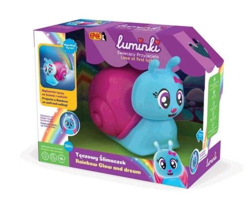 Радужная улитка Epee Luminki — это фантастическое сочетание игрушки, ночника и проектора. Поцелуй её, и её голова загорится и начнет издавать сладкие звуки. Нажмите кнопку на корпусе, чтобы начать проецирование разноцветной радуги. Продукт автоматически выключается через 15 минут после последнего взаимодействия.
