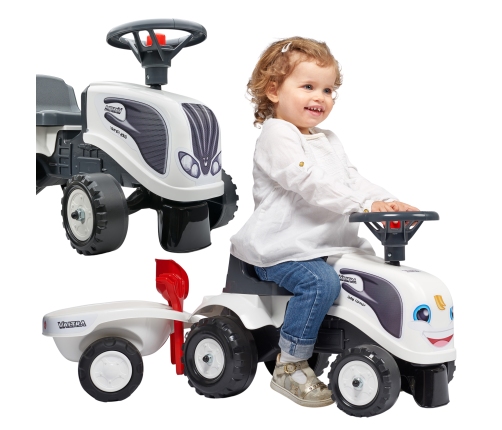Трактор-каталка Baby Valtra с прицепом от Falk — это воплощение мечты не одного маленького тракториста. Он тщательно изготовлен с вниманием к каждой детали! Ни один настоящий фермер не отказался бы от такого. Транспортное средство изготовлено из высококачественных материалов и предназначено для детей от 12 месяцев. Оно оснащено съемным прицепом с панелями и рулем с сигналом.
