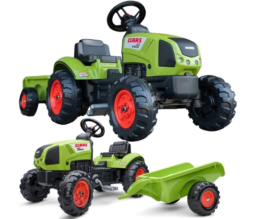 Traktor na pedały z przyczepą CLAAS producenta FALK to spełnienie marzeń niejednego małego traktorzysty. Starannie wykonany, z dbałością o najmniejszy szczegół! Żaden Farmer by takim nie pogardził. Pojazd wykonany z najwyższej jakości tworzywa przeznaczony dla dzieci w wieku od 2 lat. Długość zestawu 132cm. Pojazd jest wyposażony w odpinaną przyczepę z panelami oraz kierownicę z klaksonem. Koła traktorka zostały wykonane z wysokiej jakości plastiku.