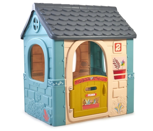 Садовый домик Casual от FEBER выделяется своей нежной цветовой гаммой, которая привлекает внимание и гармонично вписывается в окружающую среду сада. Пастельные оттенки синего, зелёного и жёлтого создают приятную и спокойную атмосферу, способствующую отдыху и творческим играм. Приглушённые цвета домика защищены от выцветания благодаря покрытию ANTI-UV, что гарантирует сохранение эстетичного внешнего вида на долгое время, независимо от погодных условий.