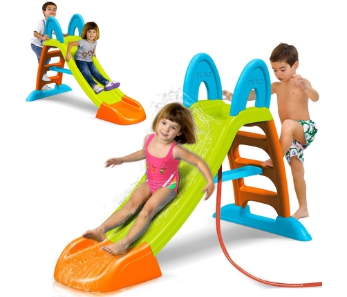 FEBER KOLOROWA ZJEŻDŻALNIA 152 CM ZE ŚLIZGIEM WODNYM to nieodłączny element każdego placu zabaw, zarówno przy domu, jak i w miejscach użyteczności publicznej. Zjeżdżalnie firmy Feber wykonane są z wysokiej jakości materiałów z dbałością o najdrobniejsze szczegóły. Zjeżdżalnie można łączyć z innymi placami zabaw czy też domkami ogrodowymi, tworząc wyjątkowe miejsce do dziecięcych zabaw.