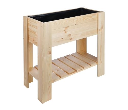 Šī vidukļa augstuma puķu kaste ir izgatavota no priedes koka, tādēļ tā ir ļoti izturīga, draudzīga videi un viegli sasniedzama. Stingrās koka kājas tai piešķir papildu stabilitāti. Zem puķu kastes ir plaukts, kas nodrošina pietiekami daudz vietas dažādu sēšanai un zemes kopšanai nepieciešamu lietu salikšanai. Lūdzu, ņemiet vērā, ka koks ir dabīgs produkts, tādēļ tam var būt nepilnības.