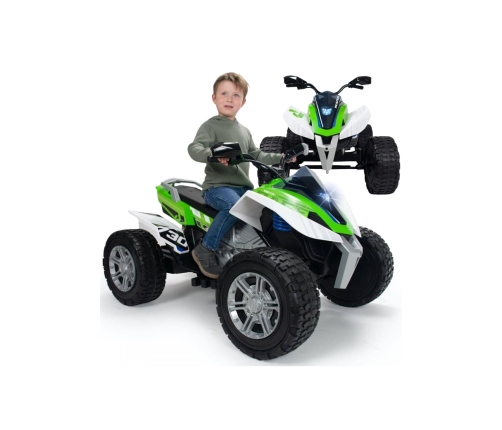 Elektryczny Quad Rage od hiszpańskiej firmy produkującej pojazdy elektryczne INJUSA to idealna propozycja dla dzieci lubiących adrenalinę od 6 roku życia. Pojazd dzięki szerokim kołom jest bardzo stabilny, a gumowy bieżnik zapewnia dużą przyczepność i komfort jazdy po różnych podłożach. Moc akumulatora 24V zapewnia jazdę z prędkością do 11km/h.