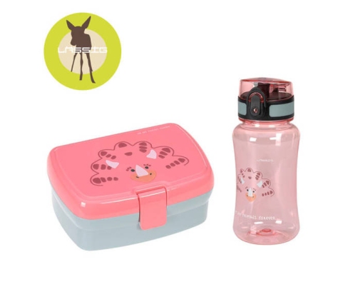 Piękny zestaw lunchowy niemieckiej marki LASSIG składa się z pojemnego lunchbox'a i butelki - bidonu. Przyda się do przedszkola lub szkoły, podczas spacerów, treningów i wycieczek. Pudełko jest sprytnie podzielone na część główną na dole, która pomieści np. kanapki oraz wyjmowany dwudzielny pojemnik na przekąski, np. pokrojone owoce czy wafelki, który można umieścić w górnej przestrzeni.