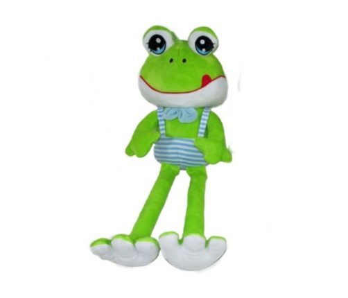 Плюшевая улыбающаяся лягушка в смешной курточке. Общая длина игрушки 100 см, размер сидя 55см. Имеет бархатистый гладкий мех, декоративный бант на шее, мягкий и эластичный наполнитель.