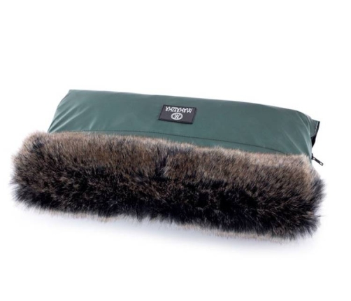 Mufka Premium jest całkowicie wiatro i wodoodporna, a jednocześnie „oddychająca”. Po bokach zapinana jest na suwaczki dla jeszcze lepszej szczelności przed chłodem. W górnej części ma wygodną kieszonkę na najpotrzebniejsze drobiazgi, zapinaną na zameczek.
