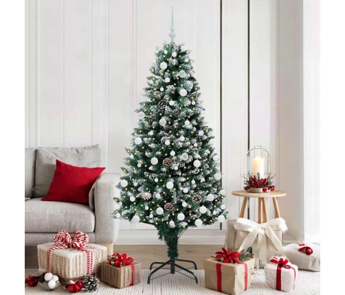 PVC mākslīgais Ziemassvētku koks apvieno tradicionālo šarmu ar LED apgaismojuma ērtībām un modernitāti. Tas ir izstrādāts gan iekštelpām, gan aizsargātām āra vietām. Koka konusveida struktūra, izrotāta ar priedes čiekuriem un sniegu, piešķir svētku sajūtu, ideālu maģiskai atmosfērai tavā dzīvojamā istabā, dārzā vai terasē. Šis skaistais dekors aicina Ziemassvētku garu jebkurā vidē.
