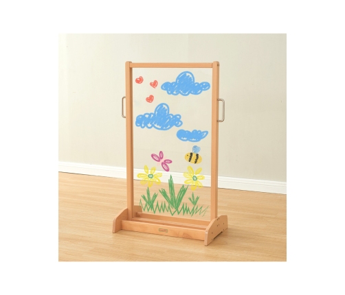 Dwustronna sztaluga malarska to doskonały wybór, który nie tylko zapewni godziny świetnej zabawy, ale także wspomoże rozwój wyobraźni, kreatywności i zdolności manualnych! Nasza sztaluga wyróżnia się przezroczystą powierzchnią akrylową, dzięki której dzieci mogą malować nie tylko to, co podpowiada im wyobraźnia, ale także inspirować się otoczeniem, malując przedmioty i osoby znajdujące się po drugiej stronie. To idealne rozwiązanie do zabawy w pojedynkę, w parze, a nawet w małej grupie!