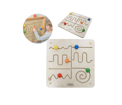 - - przesuwany labirynt rozwija umiejętności motoryczne wraz z rozpoznawaniem kształtów