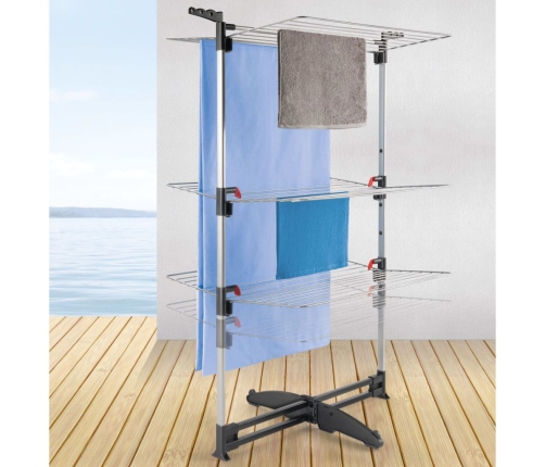 Veļas žāvētājam ir 6 pagarinājumi palagu, aizkaru un lielu dvieļu žāvēšanai. Tam ir arī daļēji regulējams augstums. Žāvēšanas plauktu var izmantot daļēji vai pilnībā atvērtu. Atverot pagarinājumus tikai vienā pusē, plaukts ietilps nelielās telpās, piemēram, vannasistabā vai ģērbtuvē. Žāvēšanas statīvā ir 2 pakaramo turētāji ar vietu 6 drēbju pakaramajiem.