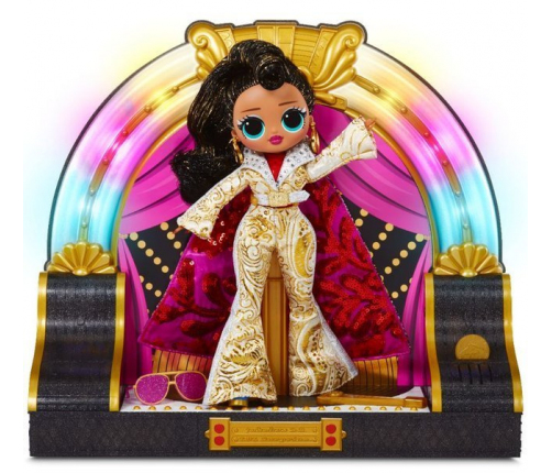 Poznajcie prześliczną rockową laleczkę LOL! Lalka jest wyjątkowa, wyróżnia się swoim wyjątkowym wyglądem i ubiorem. Laleczka ma złoty strój, złote dodatki i niesamowitą „pelerynkę". Jest prawdziwą następczynią króla rocka Elvisa Presley'a! Lalka występuję na swojej niepowtarzalnej scenie, która została wyposażona w szafę grającą. Szafa grająca wydaje dźwięki. W zestawie znajdziesz również tekst piosenki. Daj się ponieść rockowym melodiom i odgrywaj wesołe rockowe historyjki, razem z laleczką LOL!