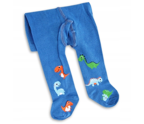 Miękkie rajstopki niemowlęce świetnie sprawdzą się zamiast spodni lub półśpiochów. Mogą być również dodatkowym ociepleniem pod spodnie, w mroźne zimowe dni. Rajstopki Polskiej marki Milusie to sprawdzone i bezpieczne produkty. Na powierzchni ciemno niebieskich rajstop znajdziemy zabawne wzory w kolorowe dinozaury. Podwójny klin na pupie zapewni dziecku wygodę, i zapobiegnie zsuwaniu się rajstopek. Wytłoczona piętka i paluszki również zapewnią więcej wygody dziecku.