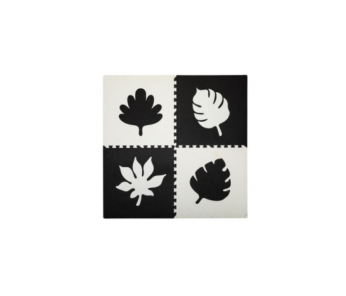 Mata MoMi FELI składa się z 16 elementów – 4 puzzle, 4 duże liście oraz 8 elementów obrzeża. Każdy z puzzli ma wymiar 60x60 cm.