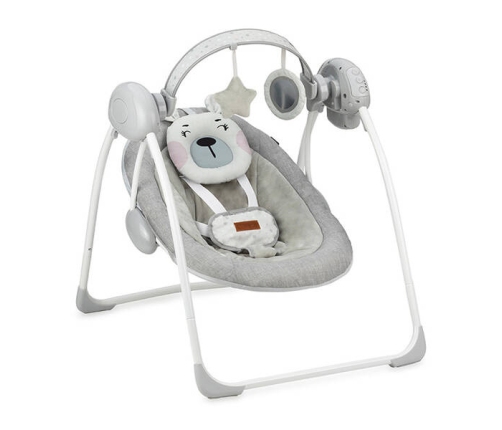MoMi LISS posiada funkcję automatycznego bujania, w 5 poziomach prędkości. Bujaczek jest zasilany na baterie lub adapter.