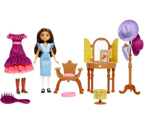 W zestawie Garderoba Lucky znajdziesz lalkę Lucky (ok. 17,5 cm) w uroczej niebieskiej sukience, gotową buszować po strychu pełnym skarbów. Wśród nich jest ramka ze zdjęciem, krzesło, wieszak na kapelusze, szczotka do włosów, ubranka i toaletka z otwieranymi drzwiczkami, za którymi jest lusterko.