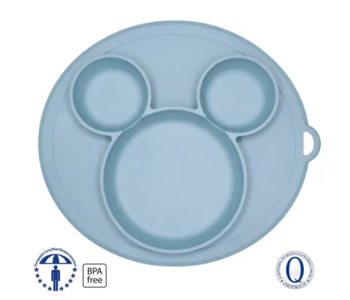 Talerzyk wykonany z miękkiego i bezpiecznego dla dzieci silikonu przeznaczonego do kontaktu z żywnością.