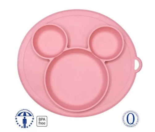 Talerzyk wykonany z miękkiego i bezpiecznego dla dzieci silikonu przeznaczonego do kontaktu z żywnością.