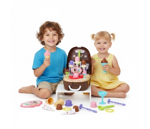 Комплект Маленького Кондитера в Рюкзаке от WOOPIE позволит вашему ребенку играть в повара, продавца и мороженщика — везде и когда угодно! Дети любят помогать родителям на кухне и играть в продавца вместе с друзьями, поэтому это идеальный комплект для каждого малыша. В наборе 36 элементов: все необходимые предметы, которые есть в любом мороженом-магазине. Игрушка также выполняет функцию рюкзака благодаря плечевым лямкам, что позволяет брать комплект с собой повсюду. Ролевые игры и подражание родителям/профессиям развивают осознание ребенка и стимулируют его воображение и креативность.