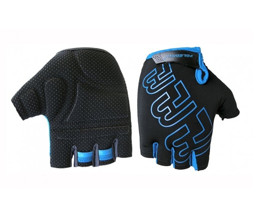 Short finger summer cycling glovesBackhand: lycraPalm: noban (little rubber non slipping dots), silicone pull-out loopsColour: black/blueSize: XL