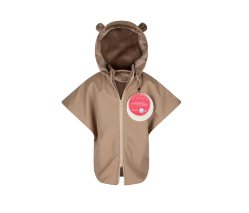 - Wodoodporna zewnętrzna warstwa, która chroni dziecko przed deszczem, śniegiem, wiatrem. Środek poncza wykonany z miękkiego i ciepłego futerka.
