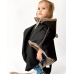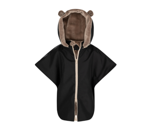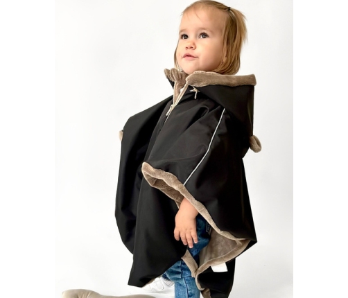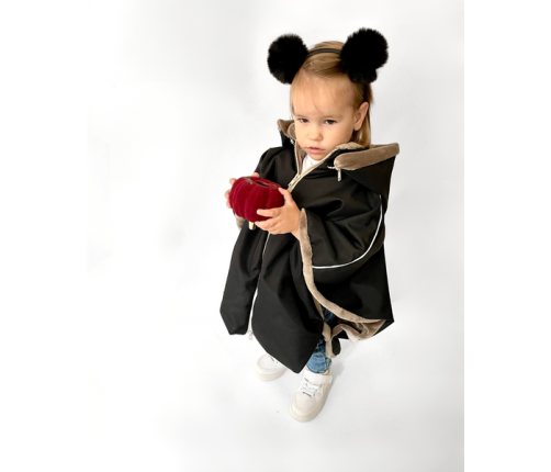 - Wodoodporna zewnętrzna warstwa, która chroni dziecko przed deszczem, śniegiem, wiatrem. Środek poncza wykonany z miękkiego i ciepłego futerka.