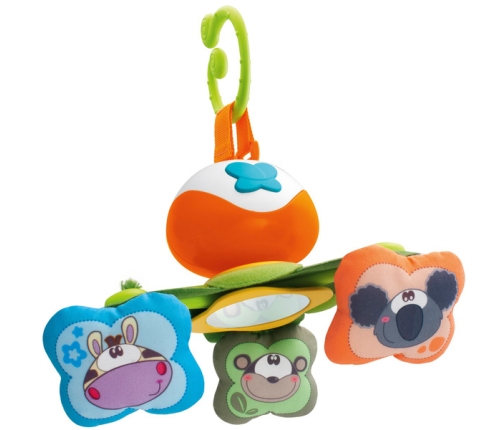 Игрушка "Dancing Friends" — это музыкальная подвесная карусель на коляску, автокресло или люльку, которая развлечет ребенка во время длительной прогулки или поездки, а также стимулирует исследовать окружающий мир.