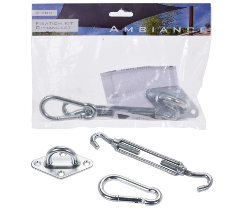 Trīs detaļas ir izgatavotas no izturīga cinkota dzelzs, un tās ir ievietotas polietilēna maisiņā. Kādiem nolūkiem vēl var izmantot šo komplektu? Ar diviem komplektiem var uzstādīt, piemēram, šūpuļtīklu.