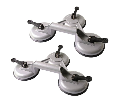 Vakuums tiek izveidots, pagriežot rokturus. Katram piesūceknim ir sava ātrās atbrīvošanas un bloķēšanas svira. Šis pacēlājs ir lieliski piemērots stiklam, lokšņu metālam, plastmasai, kā arī citām gludām virsmām. Komplektā ir iekļauti 2 vakuuma pacēlāji.