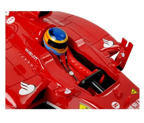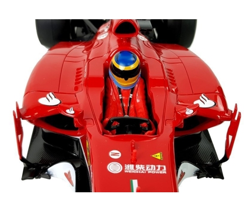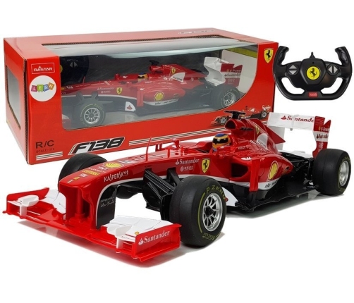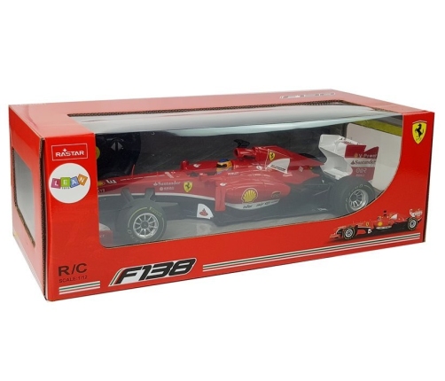 Przedstawiony model to bolid FERRARI F138 w kolorze czerwonym, idealnie odwzorowany z realistycznym odpowiednikiem. Wykonany w skali 1:12. Opływowy kształt i sportowy charakter jest idealnie odwzorowany. Obudowa wykonana została ze wzmocnionego plastiku, gumowe koła imitują opony, a zawieszenie autka jest amortyzowane. Auto jest niezwykle zwrotne, dynamicznie jeździ i ostro wchodzi w zakręty.